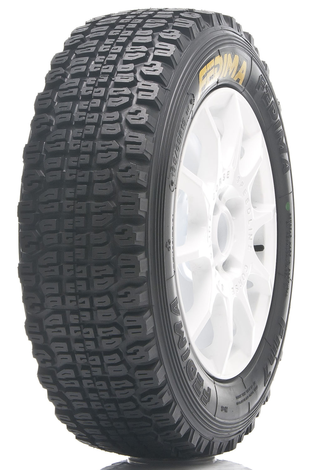 P Competición Premium. Compuesto duro en frío y blando al alcanzar temperatura. Mucho más resistentes a la degradación/erosión que el "Extra-Blando ●". (Dureza Shore +/- 72/74 en frío, blandos al tomar temperatura -en unos 400/500 metros-). Es el compuesto de más adherencia y duración relativa de Fedima, su compuesto "estrella".